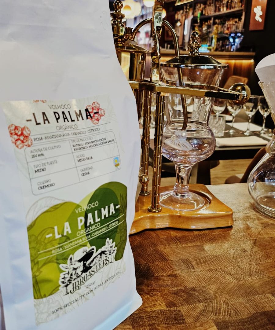 El café orgánico VOLHOCO de La Palma, tostado por Jhon Ardila, barista y fundador de JR Roasters, ofrecía una profundidad y complejidad de sabores que se complementaban perfectamente con los Petit Fours de Pedro Rodríguez Dios. Cada uno de estos pequeños bocados, desde las nubes de gofio y miel de cumbre hasta las trufas de chocolate y el crocante de almendra con flor de sal, proporcionaba una combinación justa de sabor y creatividad que dejaba una dulce impresión al final de la noche.