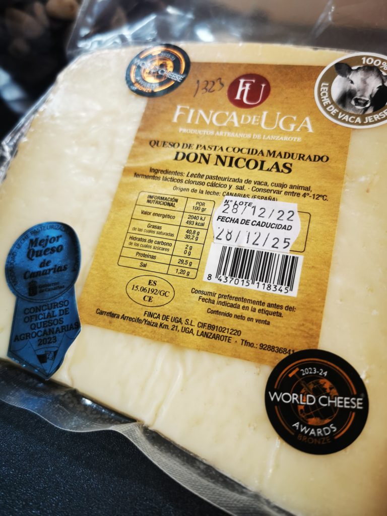 Una mesa se preparaba con una selección de quesos canarios, todos premiados en el concurso Agrocanarias. Variedades ahumadas, con corteza de pimentón y queso fresco, cada uno con su carácter único, ofrecían un recorrido sensorial por los paisajes de Canarias. Junto a ellos, los panes artesanales de Mario Torres no pasaban desapercibidos. El pan de masa madre, con su corteza crujiente y miga perfecta, y el pan de carbón activo, con su sorprendente color negro y sabor suave, complementaban los quesos de manera sublime, creando una armonía de texturas y sabores que encantaba a todos los presentes.