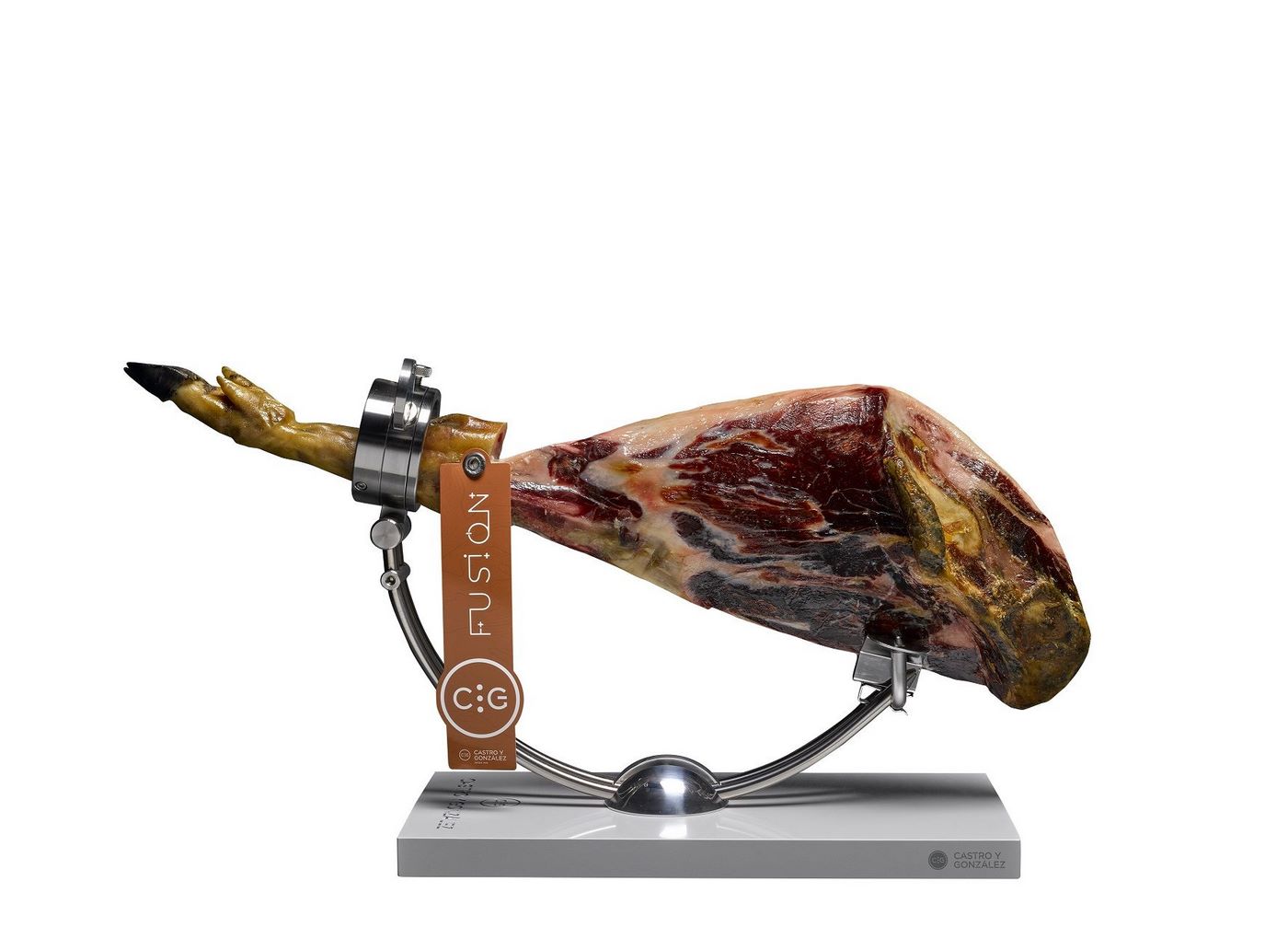 Castro y González es un claro referente en el mundo de los productos más selectos. Capitaneado desde Guijuelo por una familia con una dilatada trayectoria, con cuatro generaciones vinculadas al mundo del ibérico, la empresa es el resultado de años de experiencia y de conocimiento. Tras asentar las líneas de desarrollo de elaboraciones tradicionales -gamas bellota y selección-Castro y González ha lanzado un nuevo producto gourmet, un jamón ibérico único, singular, que nace de la fusión de dos climas y que ha supuesto un reto y la mejor expresión del conocimiento del jamón y sus peculiaridades en la península. Fusión supone un salto innovador desde la base de la tradición. Fusión es fruto de tres elementos básicos: la cabaña propia, la dehesa y la combinación de los climas de Guijuelo y de la Sierra de Huelva.