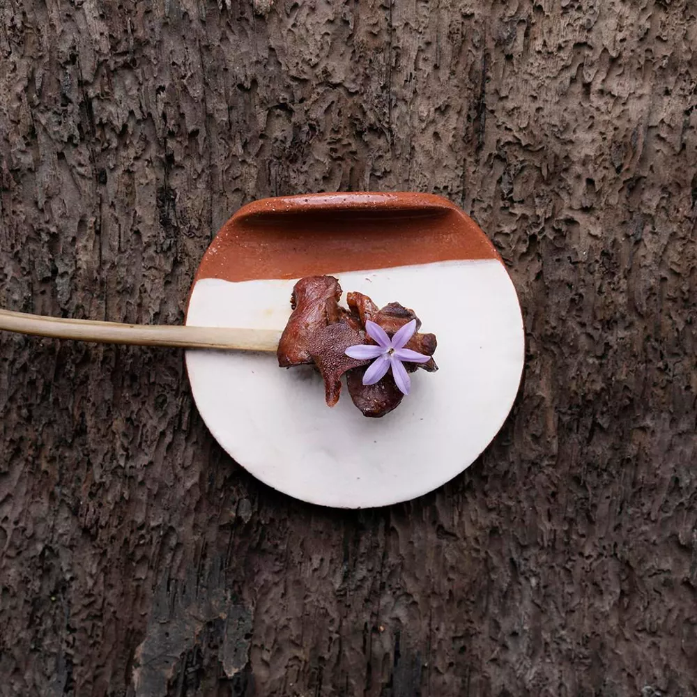 La propuesta de ARREA! destaca por su humildad técnica, no hay artificios innecesarios, sino un aprovechamiento exhaustivo de cada materia prima. El caldo de liquen, servido en cerámica rústica, contiene notas ahumadas y terrosas, mientras la carne de corzo, apenas condimentada, exalta su procedencia salvaje. Este viaje gustativo hacia los orígenes revela cómo la montaña puede convertirse en despensa sin necesidad de forzar la técnica culinaria, sosteniendo un discurso de autenticidad respetuosa con el medio.