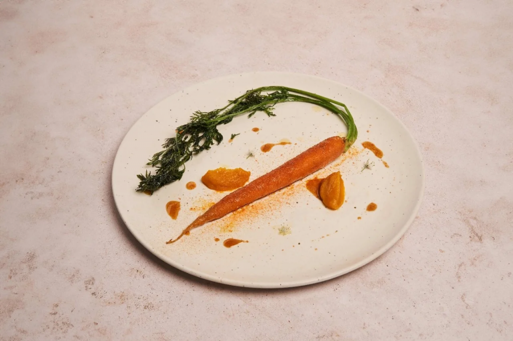 En su propuesta se valora especialmente la coherencia espacial, cada detalle arquitectónico dialoga con el discurso culinario, desde la geometría de los platos hasta la iluminación natural. El resultado es una experiencia holística donde espacio, producto y técnica se funden en una narrativa sostenible.