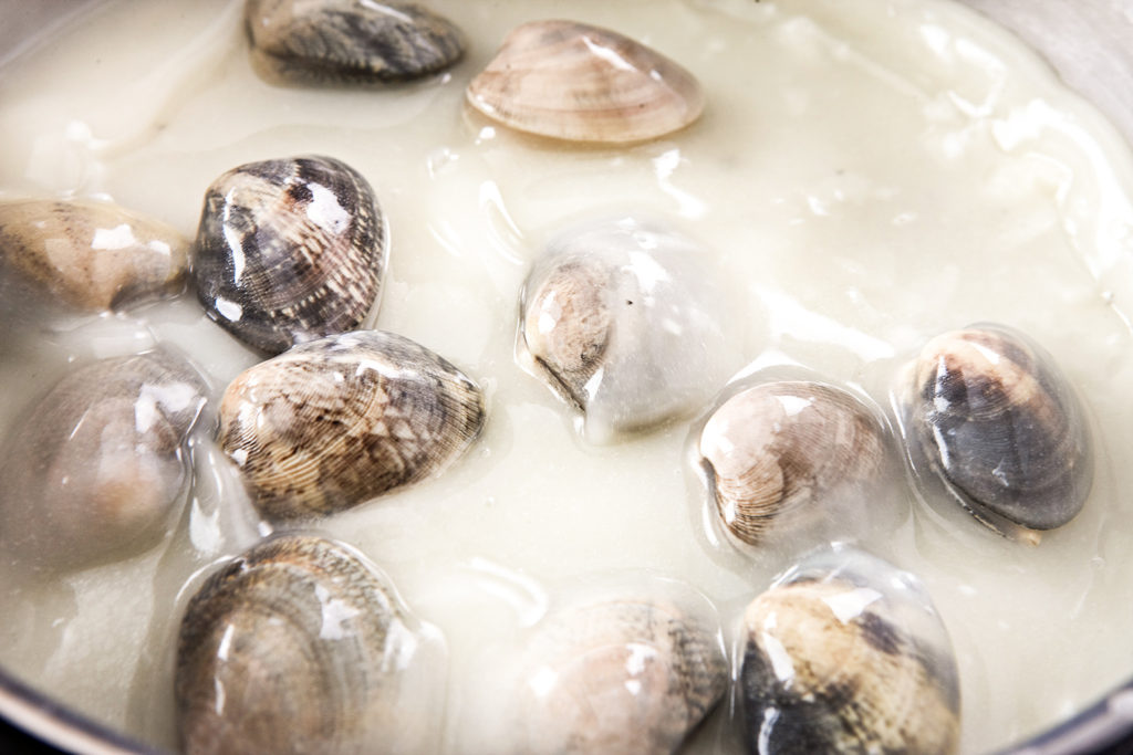Justo antes de retirar el pescado del fuego, introducimos las almejas y tapamos la cazuela. Conforme se vayan abriendo, las iremos retirando. Abierta la última, volvemos a introducirlas y si alguna se resiste, la tiramos.Espolvorear con abundante perejil picado. Servir.