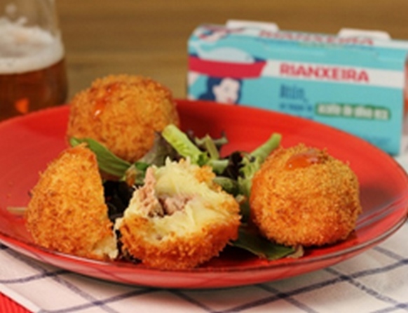 Bolitas rebozadas rellenas de atún en aceite de oliva virgen extra eco