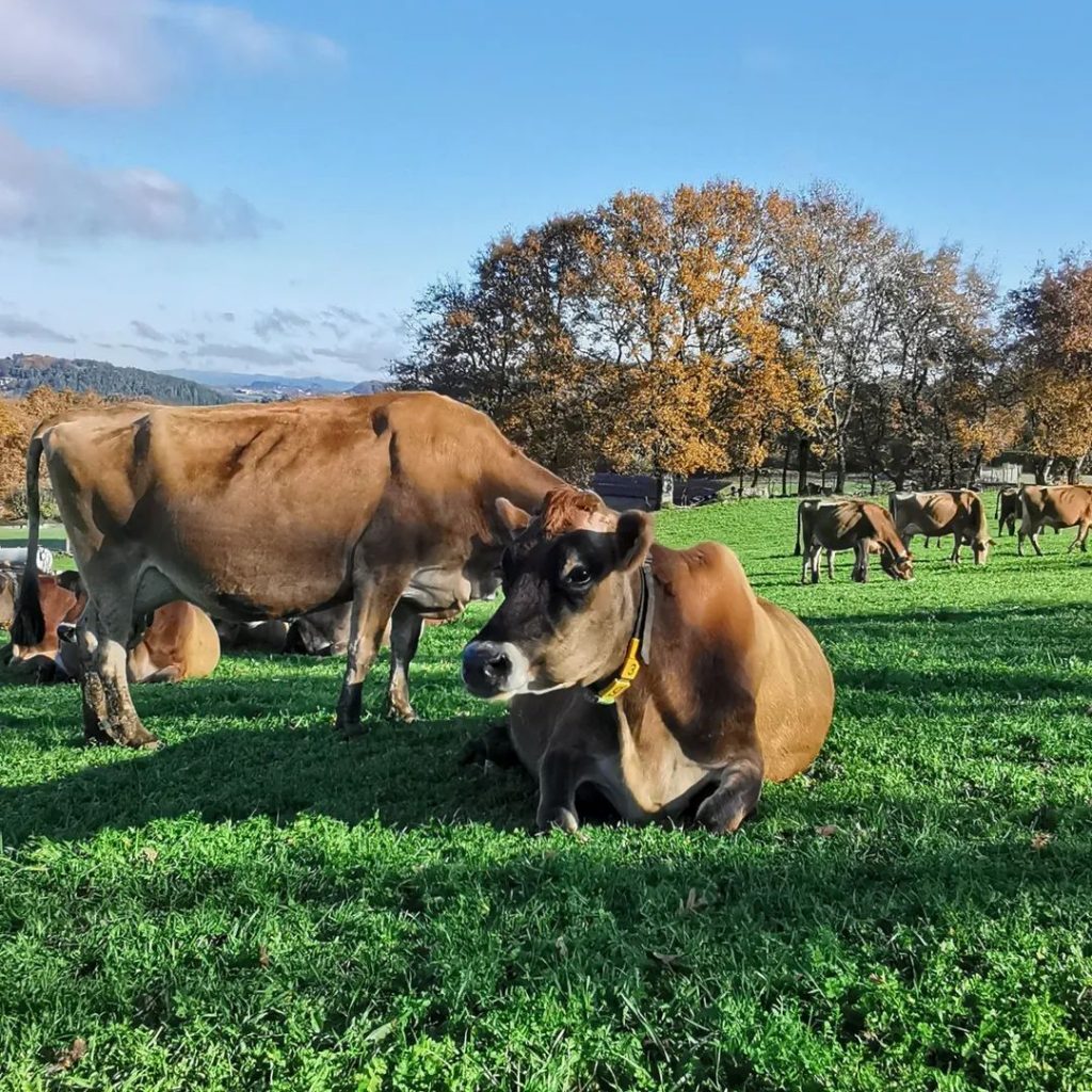 La leche utilizada para elaborar sus quesos proviene exclusivamente de vacas Jersey, raza valorada por su leche rica en grasa y proteína, que aporta estructura y sabor al producto final.