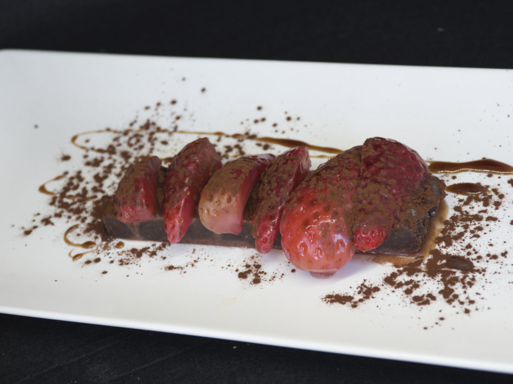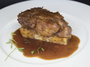 Secreto de cochino negro con polenta de boletus y salsa de soja canaria