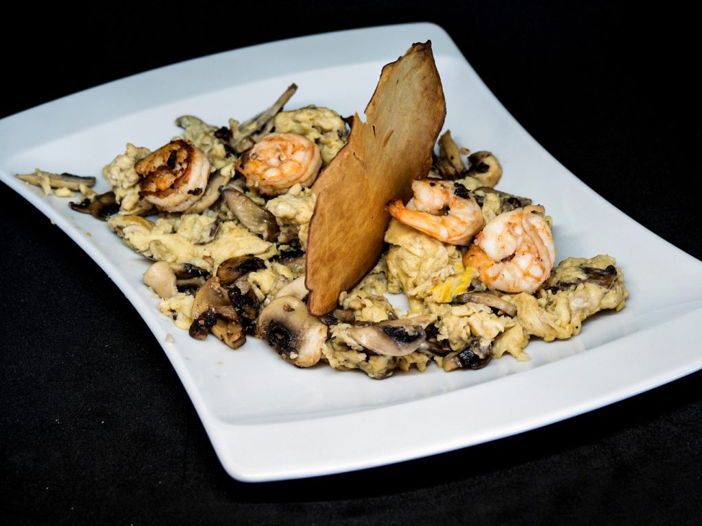 Revuelto de champiñones y langostinos
