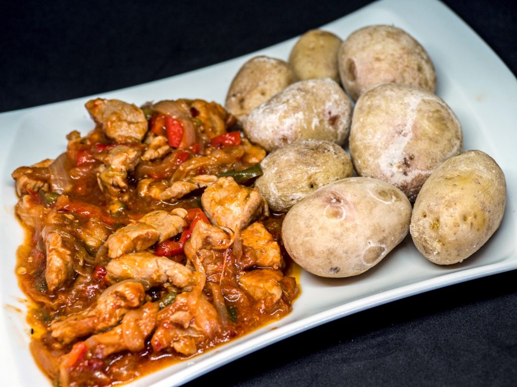 Solomillo de cerdo salteado y encebollado