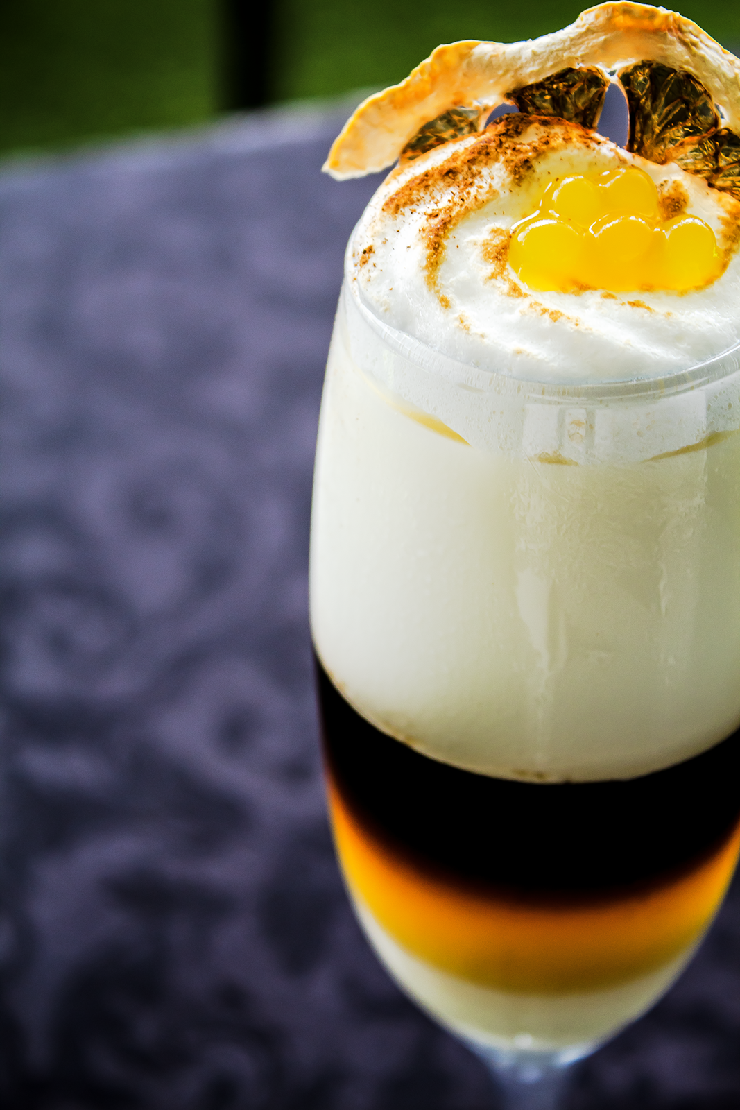 Esta versión solidificada del café tinerfeño es un verdadero acierto, ofreciendo una nueva forma de degustar un clásico que muchos amamos. Caterina nos describe su estructura, lograda a través de gelatina, que incluye leche condensada, gelatina de Licor 43, café, panacota, y al fondo de la copa, un merengue italiano. El adorno se compone de un limón deshidratado, esferas de limón y canela… ¡Una auténtica maravilla!