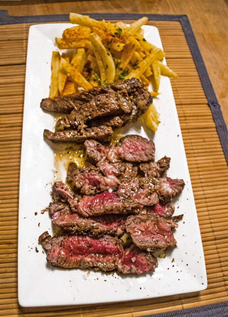 El lomo bajo al punto con papas fritas naturales recuerda algo que conviene no olvidar, y es que la cocina bien hecha no necesita adornarse para resultar convincente. La carne llega en su punto exacto, jugosa, tierna, de buen género, con ese jugo de cocción que acompaña sin necesidad de más. Las papas fritas hacen lo que tienen que hacer, que ya es bastante más de lo que a veces parece. Y el plato entero deja la idea clara que cuando el producto es bueno y el punto es el correcto, lo importante es no estropearlo.