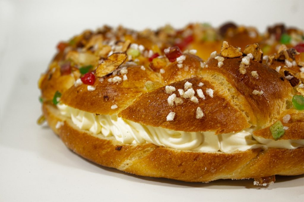La elaboración del Roscón de Reyes en Mario Bake’s sigue un meticuloso proceso artesanal. La masa fermentada, enriquecida con ingredientes de la más alta calidad como huevos frescos, mantequilla pura, y aromatizantes naturales, se transforma en una corona adornada con frutas confitadas y azúcar. Este proceso garantiza un roscón de textura suave y sabor inigualable.