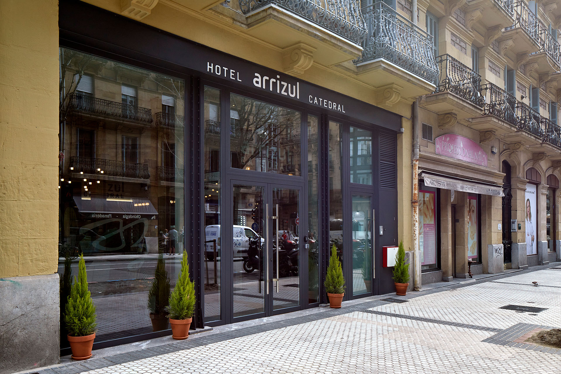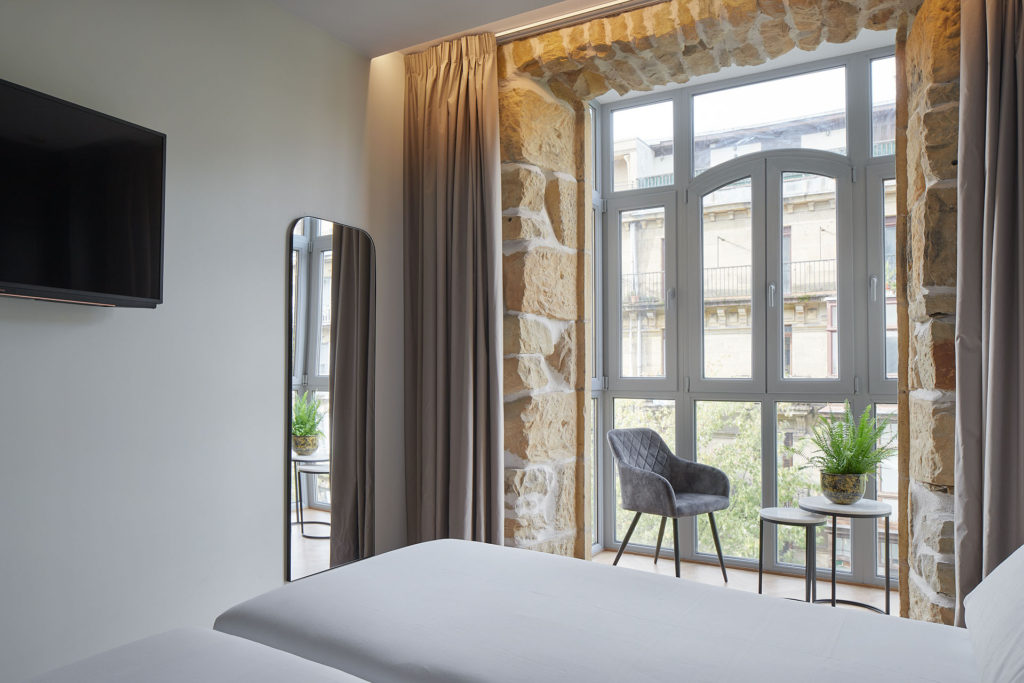 Finalmente, el Hotel Arrizul Catedral, uno de los hoteles más nuevos de San Sebastián, se encuentra estratégicamente ubicado en el centro de la ciudad, cerca de la imponente Catedral del Buen Pastor. Con una ubicación privilegiada a solo cinco minutos a pie de la famosa playa de la Concha y del Palacio de Kursaal, este hotel urbano renovado conserva su fachada original y ofrece un fácil acceso a la zona comercial, playas y vibrante escena de bares de pintxos y restaurantes.
