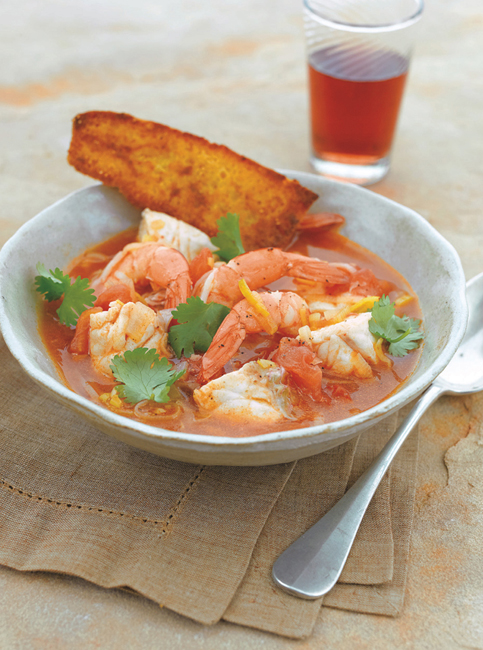 Esta receta portuguesa de sopa rica de pescado demuestra que la riqueza de una sopa no siempre depende de la intensidad del caldo ni de un exceso de condimentos. En este caso, el término rica alude más bien a la generosidad de sus ingredientes: pescado blanco, langostinos, hortalizas y un punto de chile que aporta viveza sin romper la delicadeza del conjunto. Servida con picatostes de pan de maíz, ofrece un contraste de textura y un perfil profundamente atlántico.