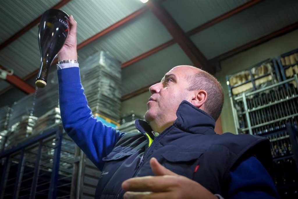 Un empleado de una bodega extremeña examina una botella de cava. Efeagro/Jero Morales