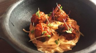 Polpette de ternera sobre nube de cacio e pepe