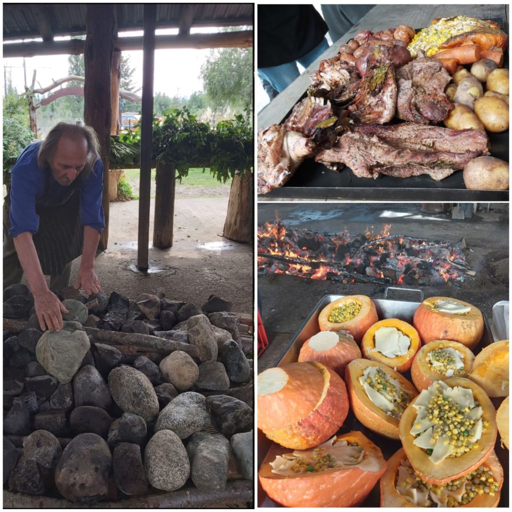 A 24 km de Bariloche, en Colonia Suiza comienza el ritual gastronómico de Víctor Goye.  Antes del mediodía convoca a los comensales, y él inicia los primeros fuegos -entre piedras, leñas, hojas de nalca y maqui-para luego cubrir con lienzos las tandas de vegetales y carnes, eso sí, una vez que calman las llamaradas.  Con una demora exacta de hora y media de cocción, el tiempo permite una visita a la feria de artesanos y a la cervecería Berlina a degustar estilos de cervezas patagónicas estacionales y ediciones limitadas