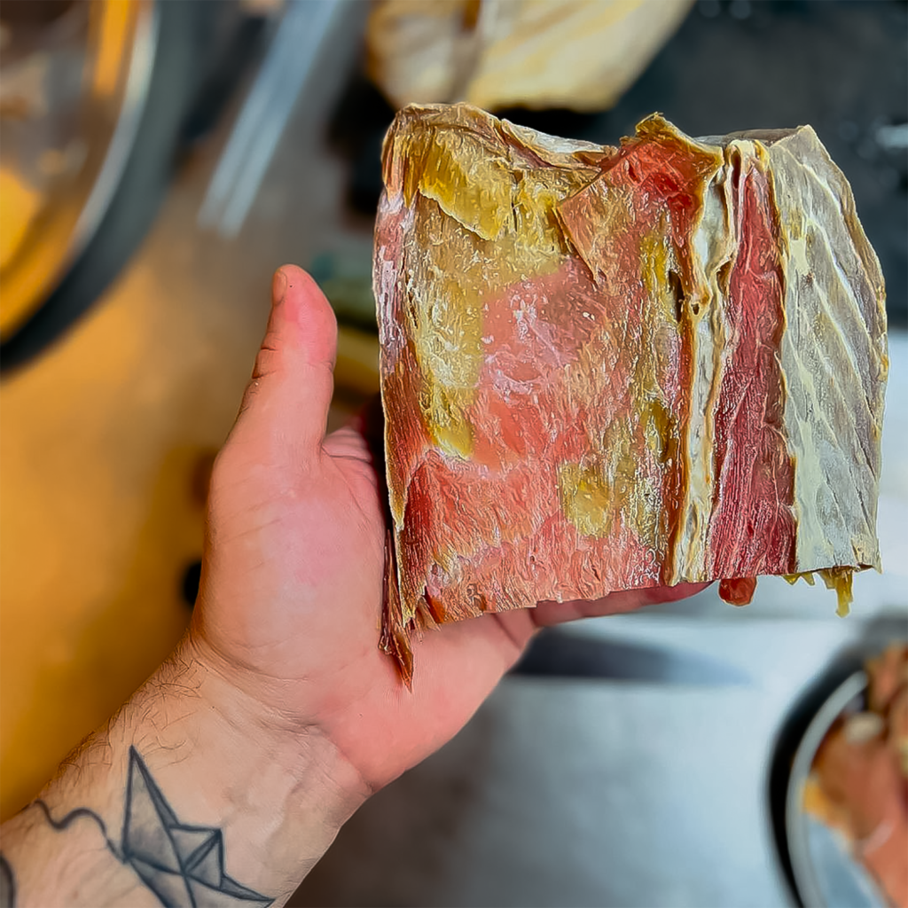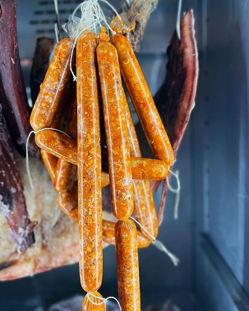 El concepto, la espina dorsal, tiene nombre: charcutería marina, una tendencia de gastronomía sostenible que aprovecha de la mar hasta los descartes. En España, el conocido como chef del mar, Ángel León, lanzaba en el restaurante Aponiente su primera línea de embutidos de la mar en 2019, una filosofía que seguían cocineros como Dani García, Willy Moya y también Omar, quien ofrecía en su local bocados como salame de atún, chorizo de pulpo picante, cecina de calamar, hot dog fish, bocadillo de salchichón de choco, pastrami de atún ahumado, butifarra de sama y jurel con aceitunas negras… Hasta 70 elaboraciones.