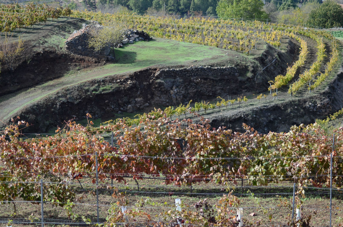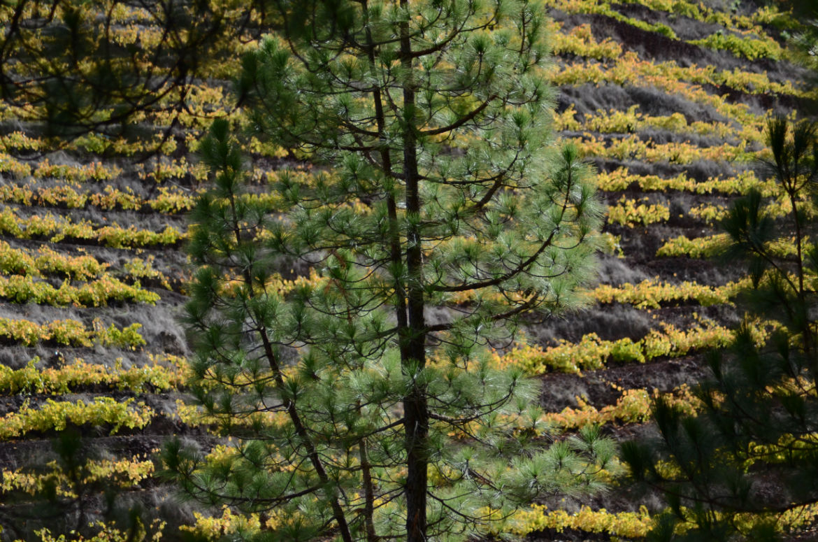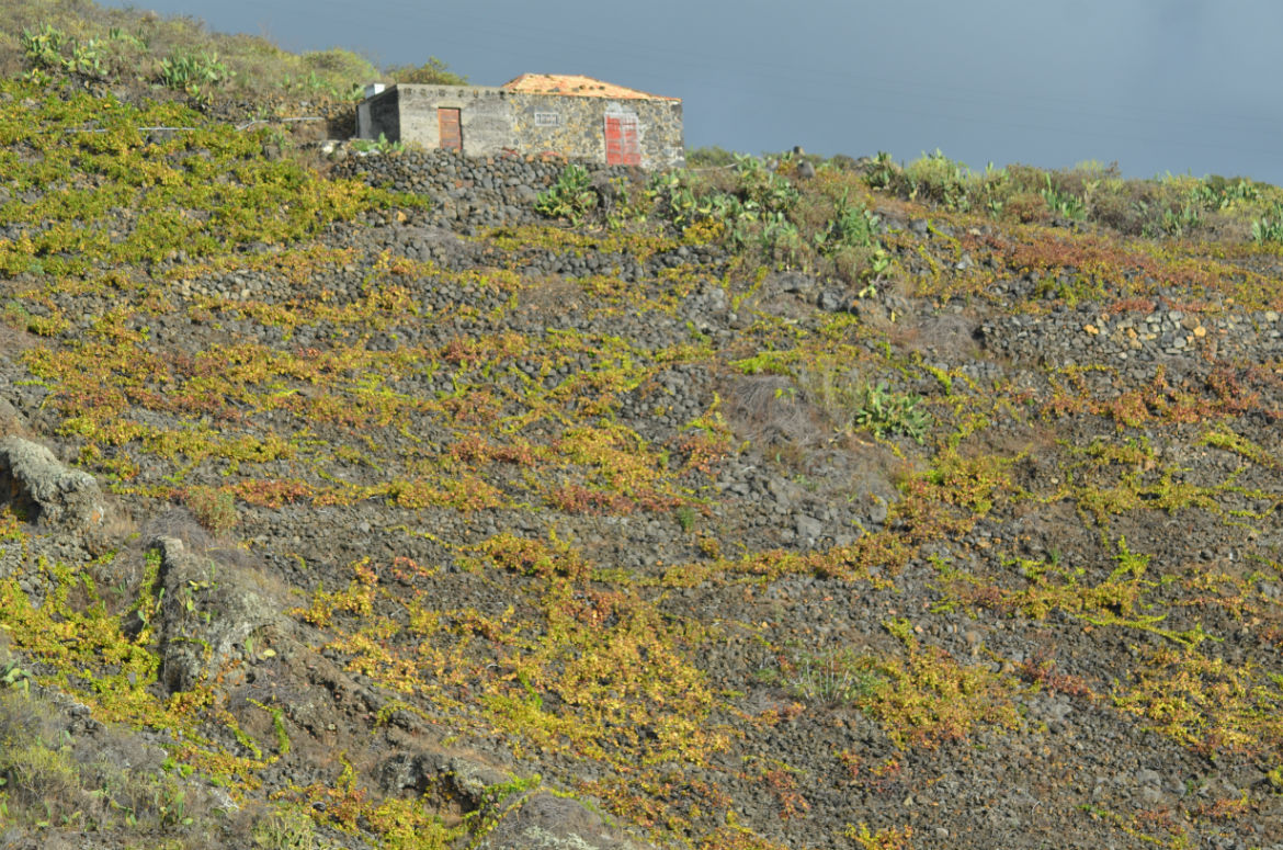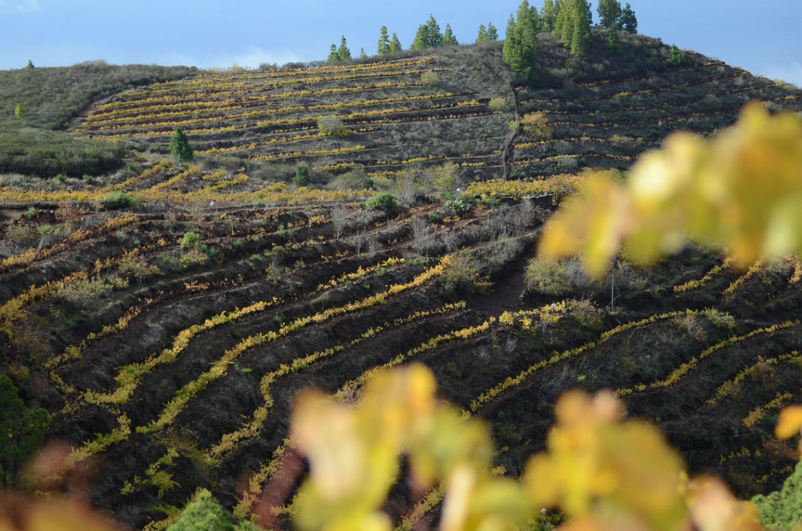 En esta isla, los viticultores han sido los arquitectos y jardineros del paisaje. La quebrada topografía de nuestra isla, hace que la mayoría del viñedo se encuentra ocupando parcelas de superficies muy irregulares, caracterizándose por pequeñas plantaciones minifundistas de baja densidad y escasos rendimientos, lo que dificulta muchísimo la mecanización, ocupando una franja de anchura variable que rodea la isla, casi de forma continua, entre los 200 y los 1.400 m, de altitud. (En el norte, los viñedos se encuentran en laderas de pendientes pronunciadas, en las cuales se han construido bancales de superficie escasa, mediante obras, cuando menos espectaculares, de paredes de piedra seca; en el sur, Las cepas se distribuyen en su mayoría, ocupando el terreno de forma irregular y rastrera para aprovechar el calor del suelo y protegerse del viento Alisio dominante).