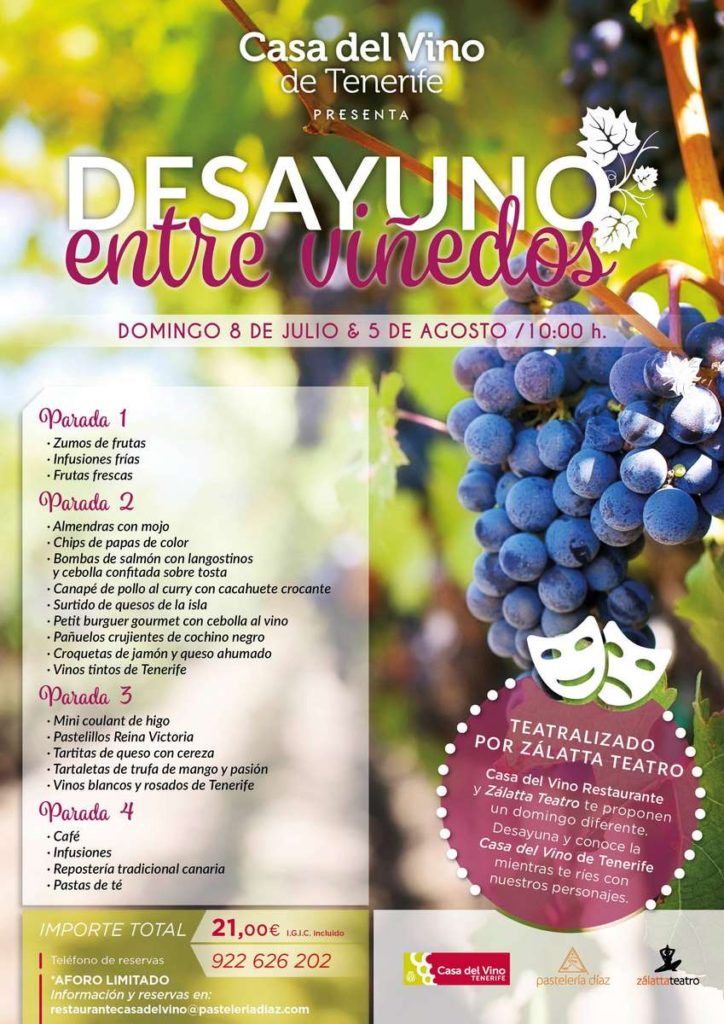Una vez más regresan los esperados “Desayunos entre Viñedos”, organizados por la Fundación Tenerife Rural, Restaurante Casa del Vino y Pastelería Díaz, el domingo 8 de julio a las 10:00 de la mañana, tendrá lugar el primer desayuno en las instalaciones de la Casa del Vino de Tenerife – (El Sauzal).